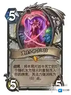 新:战吼:将本局对战中死亡的5个随机友方随从的复制洗入你的牌库。其法力值消耗为(0)点。