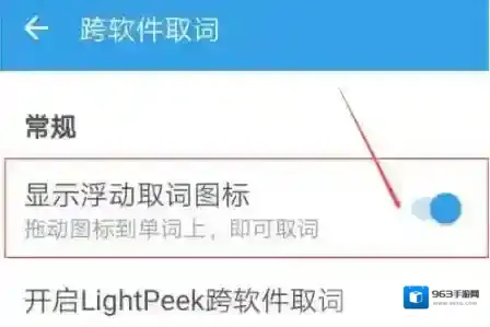 4、最后开启浮动取词图标,然后切换到其他软件中将图标拖到单词上,即可快速进行取词。