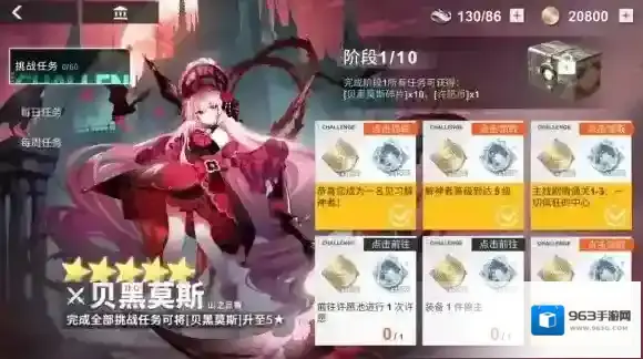 完成挑战任务,即可觉醒贝黑莫斯五星立绘!