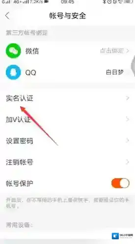 3、点击实名认证,