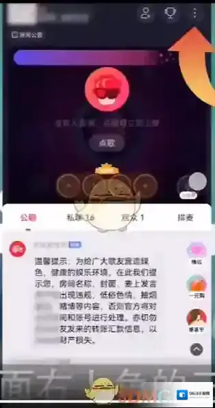 4、进入到房间内,点击界面右上角的三点图标即可选择房间模式。