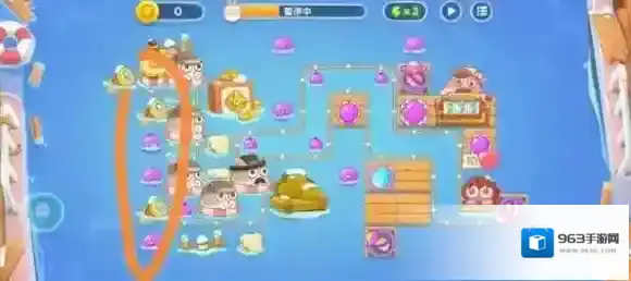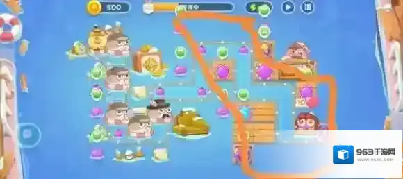 6.把左边画圈位置水雷撤掉,然后抽奖,打建筑,这里开始就需要一点点运气了,这关难的不是金萝卜是全清,慢慢的打掉周围的就行了,金萝卜不用管自己就拿到了。
