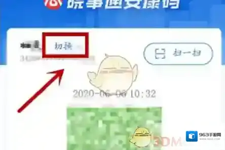 5、此时页面跳转以后可以看到自己的安康码,点击自己姓名后面的切换按钮。