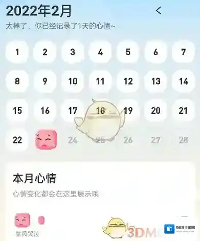 5、点击返回,就可以查看到心情已经记录在日历上了。