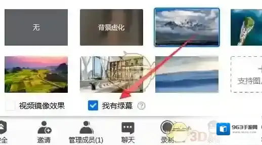 5、在虚拟背景设置界面底部可以勾选绿幕。