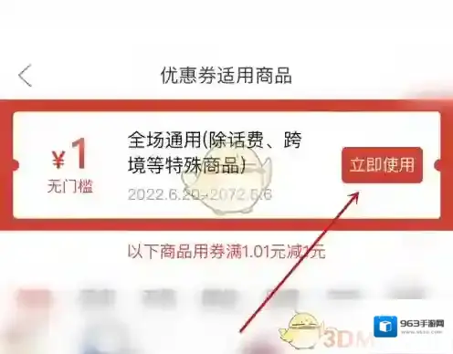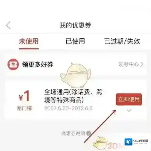 2、然后在我的优惠券中即可看到已经领到的优惠券,点击立即使用。