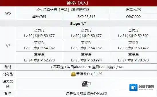 FGO帝都圣杯奇谭第9节配置 主线配置掉落详情