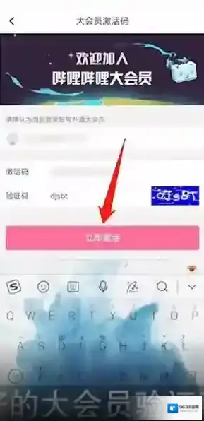 4、此时将复制好的大会员验证码粘贴到激活码一栏,并根据页面显示输入下方的验证码,最后点击下方的立即激活按钮即可,点击激活后将直接为当前用户开通大会员。