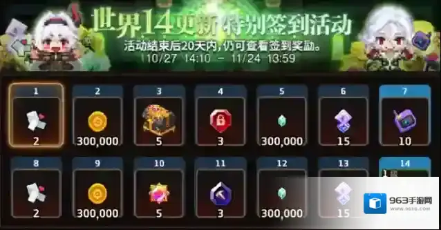 2) 特别签到活动-开启时间:10月27日维护结束后~ 11月24日维护前