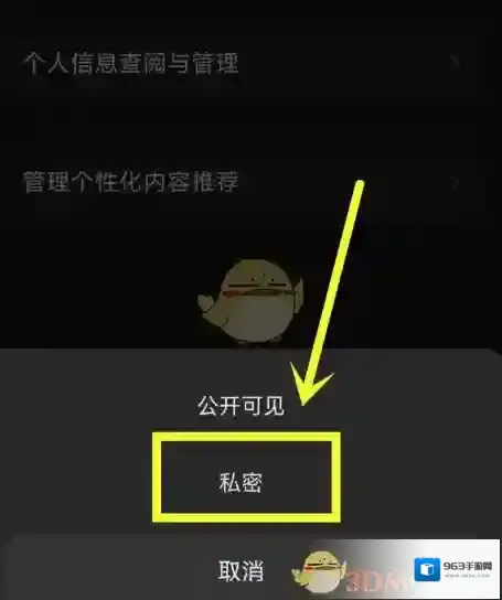 5、选择私密,即可隐藏关注的人。