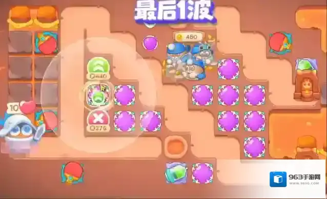 7、如图所示为最后一波阵容,省下来的钱可以升级炮塔或者安置其余炮塔就可以过关。