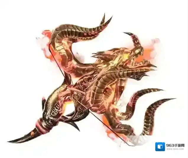 ○斧·九黎之主外观展示千机弩·九黎之主则以数对牛角打造,弩心为喷吐火焰的凶兽,观其整体,这口喷火焰的凶兽好似被牛角挟制,被迫臣服为人所用,危险又霸气。