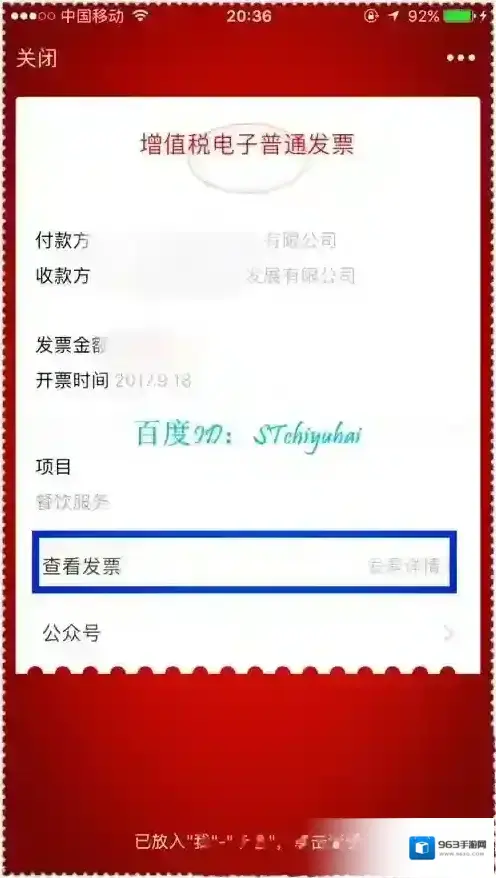 进入发票界面,核心发票的基本信息,一个是名称对不对,还有金额以及最后是否有印章之类,核对无误可以将其下载,一般都是pdf格式保存,传输到电脑,可以直接给财务,她们会进行打印,也可以自己打印出来。