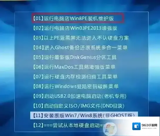 教你华硕R419UR8250完美运行win7步骤三:磁盘分区与系统安装1、进入U盘启动盘,使用键盘上下键选择1入PE系统;