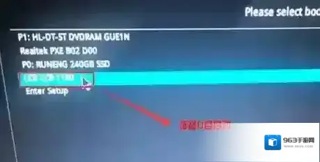 4、插入U盘启动盘,重启按ESC选择识别到U盘启动项