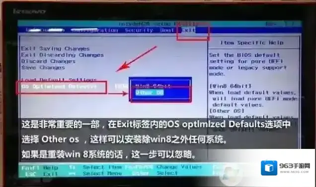 5、然后来到EXIT页面下,把OS Oprimized 改成Other OS