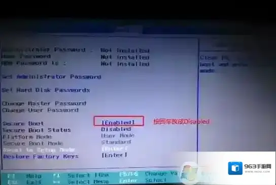 6、按方向键切换到Security,选择Secure Boot回车设置成Disabled,如下图所示;