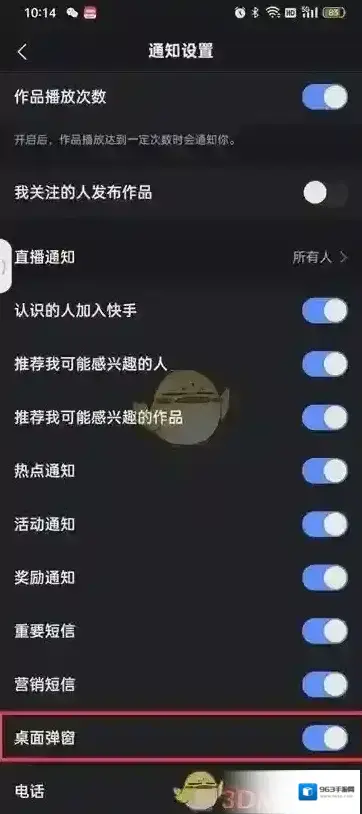 4、然后在通知设置的页面中设置桌面弹窗即可。
