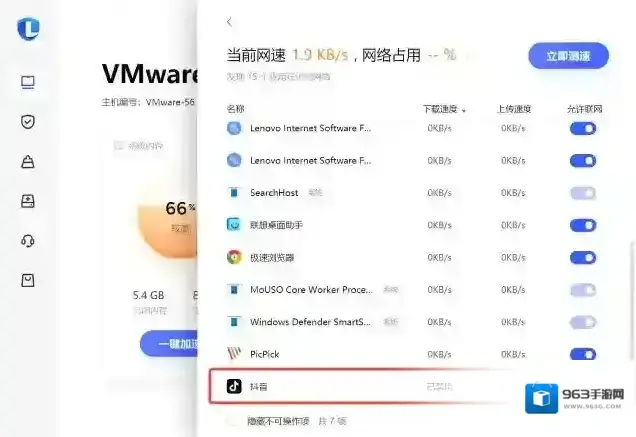 如果客户端版本大于v1.6.1且未开启网络代理,请检查电脑管家是否禁用了抖音客户端,以联想电脑管家为例,操作方法如下图,其他电脑管家可自行搜索