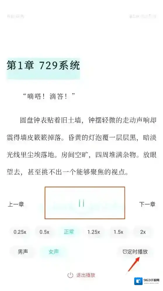 4、如图所示,即可开启听书体验了,还可以进行设置定时听书、播放速度等。