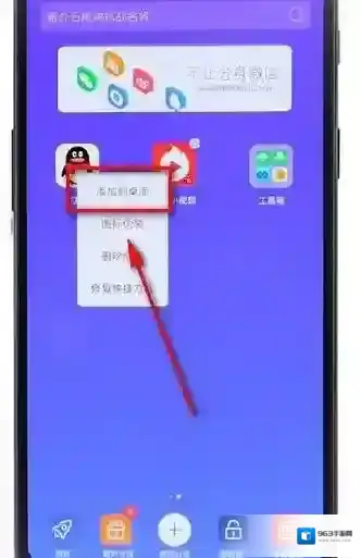 4、要是桌面没有自动的添加的话,也可以长按应用图标,选择添加到桌面