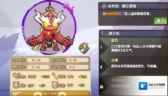 黄天化是个远程物理型,爆发能力强,能降低敌方元气,还有几率免死。必杀技:黄龙天翔,对一行多个敌人造成伤害。