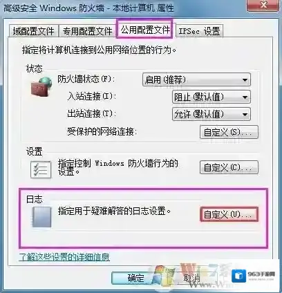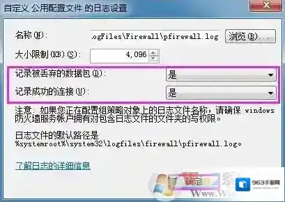8、日志的地址默认在C:WindowsSystem32LogFilesFirewallpfirewall.log。