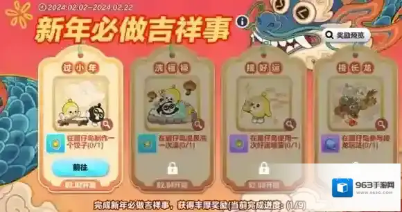 一声爆竹散千灾,福字盈门好运来。2月2日至22日,新年必做吉祥事活动开启,蛋仔每日完成吉祥事,不仅能为蛋仔岛的新春增添浓浓年味,更可免费解锁6大新春动作和丰厚彩虹币!