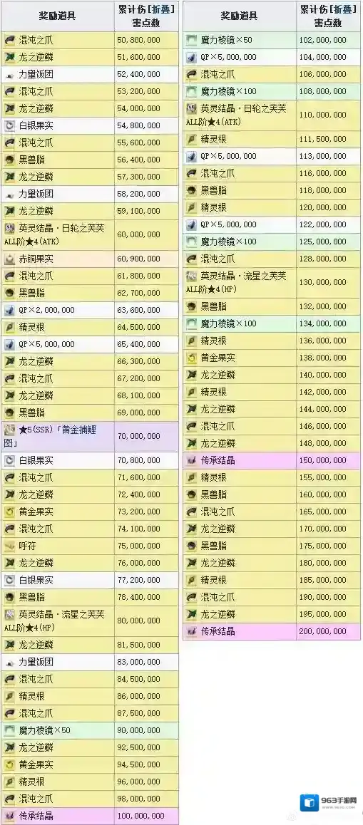 下面附上本次活动的伤害点数奖励表,详细如下: