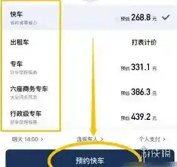 4、最后只需选择用车的类型,并点击预约按钮即可完成。