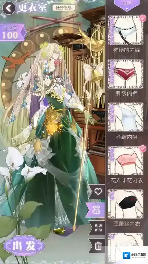 这个时候,在保证左侧时髦值为100的情况下,把所有低星的绿色,换成高星的其他服饰(别忘了服装附魔+改造)