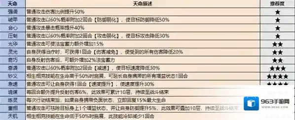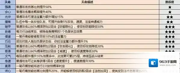 只有绝伦以上的高品质弟子才会自带天命,天命技能也有优劣之分,这里整理了一下各职业的天命排行,大家可以参考一下。值得注意的是,紫色弟子也可以通过服用九转金丹获得天命效果。