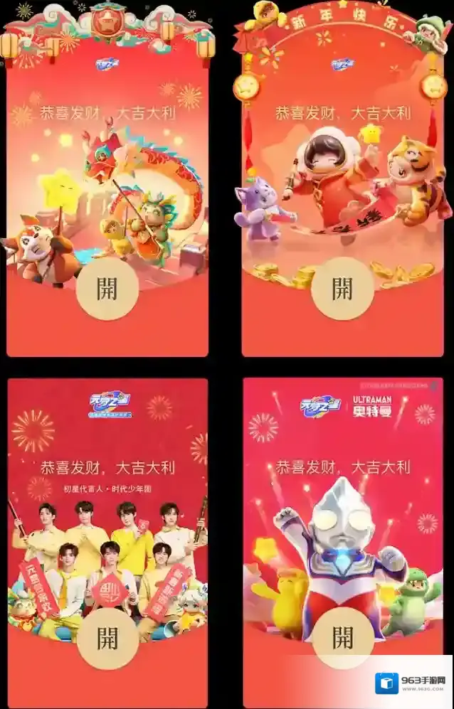 2月3日起登录游戏即可4选1领取小龙人、珍饺饺、奥特曼初星代言人时代少年团红包封面!星妹是不是超贴心,嘻嘻~奶龙新品礼