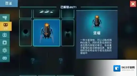最后这一关还有几个怪物种类:(刚才为了截图死了就没有实战截图,不过幸好图鉴有攻击方式介绍)