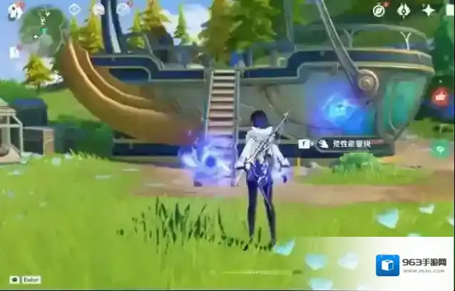 6、六号飞行器需要利用刀鳐将捆在飞行器底下的水草斩断随后登上飞行器,开启引擎就能获得精致宝箱。