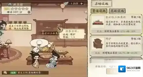 3、点击设施选项,可升级或解锁店铺设施,提升设施等级以增加店铺收益。