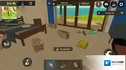 3、来到房间后,第一任务就是开始清洁房屋,点击垃圾即可拾取。