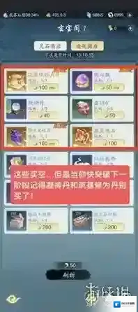 8、在灵石商店中,建筑材料前期建议直接购买完毕,三阶灵石在丹药未吃满30个前也应全部购买,然而,当接近进阶时,可以考虑暂停购买种子。