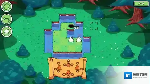 4.所有兔子进入洞穴即通关,可移动步数显示在洞穴旁。