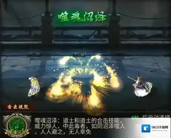 道士和道士的合击技能,威力惊人,中此毒者,如同沼泽噬人,人人避之,无人幸免!
