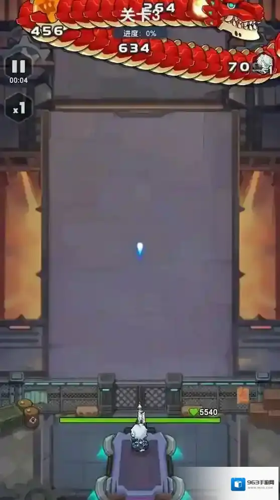 2、进入关卡后巨龙会慢慢向你靠近,角色会自动发射子弹,你可以移动角色来攻击巨龙。