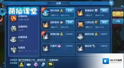游戏内还有相当多其他的玩法,如装备副本、进阶副本、门派比武、梦璃幻境、降妖任务等等,都可以获得海量经验、装备、进阶丹等道具,都是萌新必做的日常。