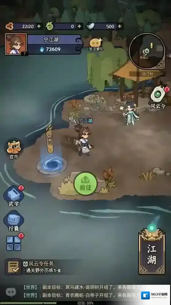 5、点击右侧的江湖按钮可以开始历练关卡,完成历练关卡能获得丰富的养成材料。