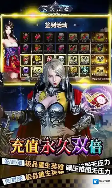 3、充值永久双倍,连续登陆签到再送顶级重生英雄,碾压推图无压力