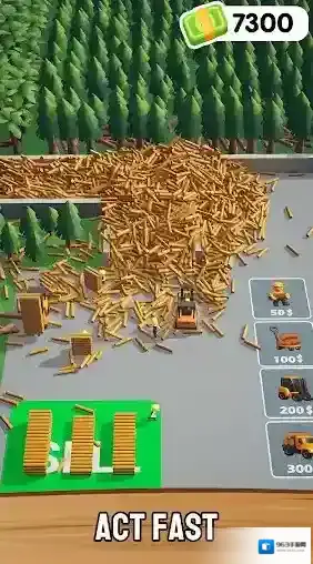 通过加工厂完美的流水线作业,将树木全部变成高品质的木板,为你带来源源不断的财富收入,以此来扩张你的木材厂,研发更多的科技,帮助你成为最棒的木材大亨!除此之外,我们可以通过努力的建设来解锁新的区域,建造起更多的木材厂!