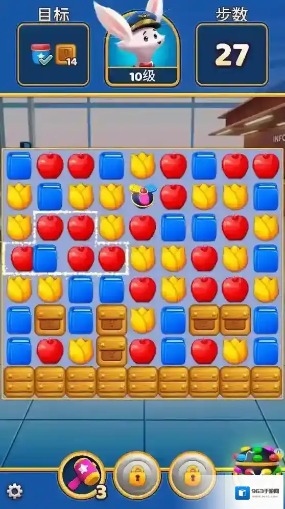 3、将三个相同的物品放在一起就可以消除,在有限的步骤内消除所有目标就可以通关。