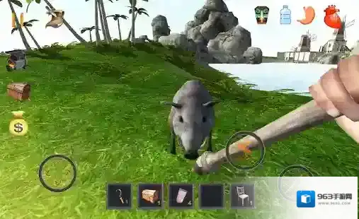 2、我们可以登录各种岛屿,拿起武器、道具来探索岛屿,捕捉各种猎物来充当食物,保证长久的生存。