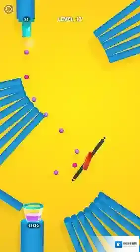 7、例如新的关卡中,需要进行不同的调整,让小球继续掉落到杯中。