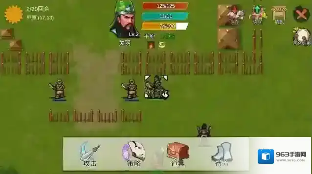 5、开始战斗后玩家可以点击自己的武将来进行移动、攻击或者使用道具。