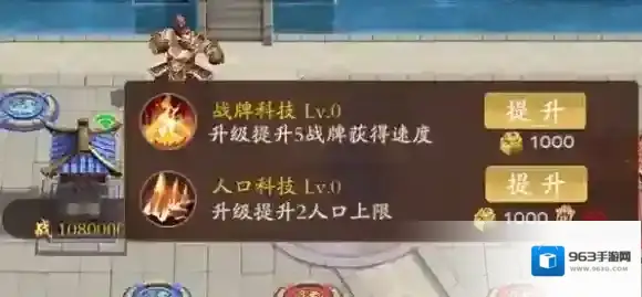 5、点击带有自身名称的科技建筑可以升级塔防科技,人口科技可提升上阵人口上限,武魂科技可提升战牌的获取速度。